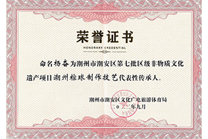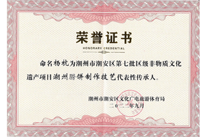 “揚航”始終遵循“誠信為本、質量第一、顧客至上”的經營理念,先后榮獲“廣東老字號”、“廣東省著名商標”、“廣東省重點商標保護名錄”、“廣東省非物質文化遺產保護單位”、 “國家高新技術企業”等榮譽稱號。并擔任潮州市商標專利協會會長單位、潮州市食品行業協會常務副會長單位、廣東省老字號協會常務理事單位、潮州市老字號協會副會長單位、潮州餐飲行業協會副會長單位、潮州烹調協會副會長單位等社會團體的職位。